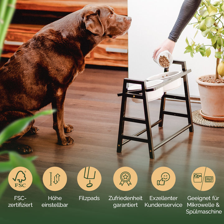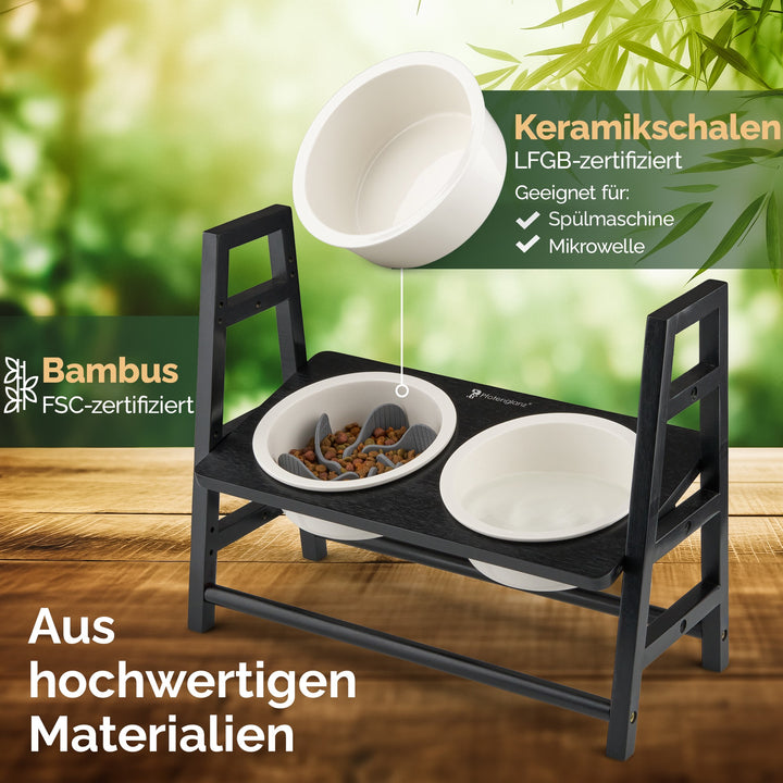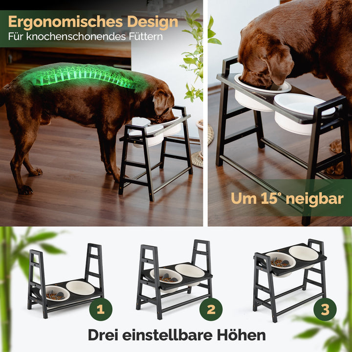 𝐙𝐄𝐈𝐓𝐋𝐎𝐒𝐄𝐒 𝐃𝐄𝐒𝐈𝐆𝐍: Die Hundenapf Station besteht aus FSC-zertifiziertem Bambus. Ein höhenverstellbarer Hundenapf, der sich nahtlos in deine Wohnung integriert. Erleichtere deinem Hund das Fressen durch die 15° Neigung.