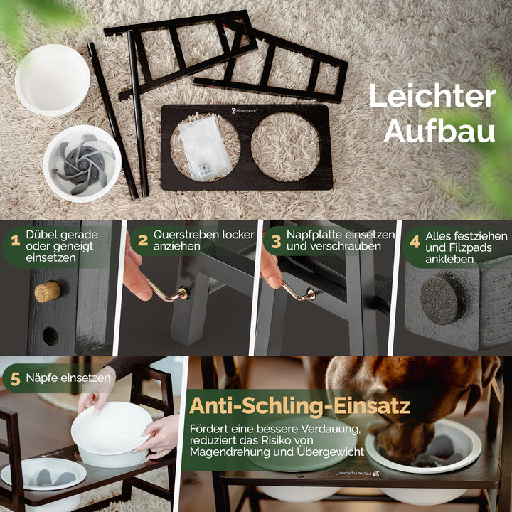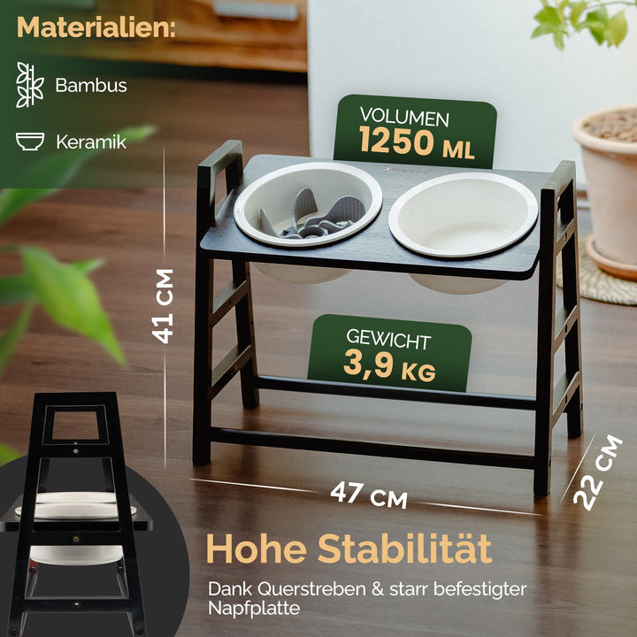 𝐄𝐗𝐓𝐑𝐄𝐌 𝐒𝐓𝐀𝐁𝐈𝐋: Ab sofort frisst dein Hund quasi lautlos. Dank der festen Montage der Keramiknäpfe kommt es weder zum Klappern noch Schiebe-Geräuschen – eine ruhige Lösung für deine Wohnung.
