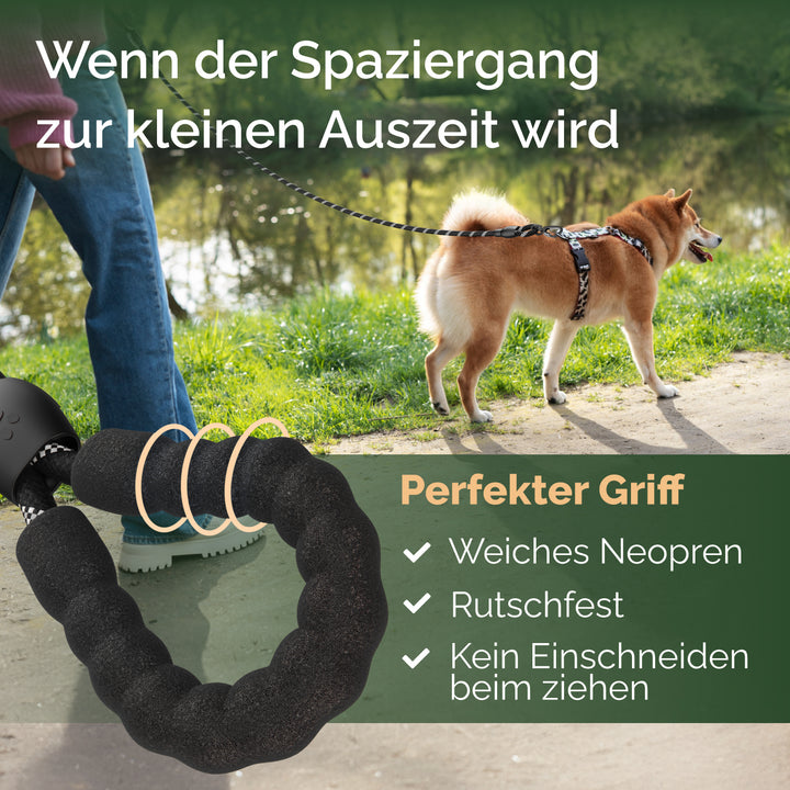 - Bequem und Handlich: Der weiche, mit Neopren gepolsterte Griff an der Trainingsleine für Hunde bietet hohen Tragekomfort. Mit nur 160g ist die Hunde Leine für große Hunde sehr leicht und ideal auch für lange Spaziergänge