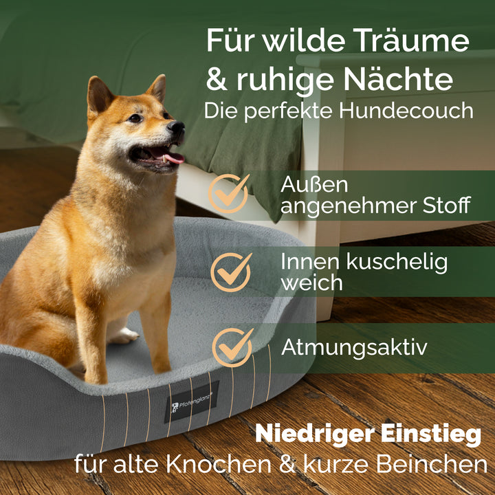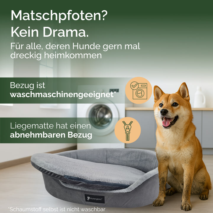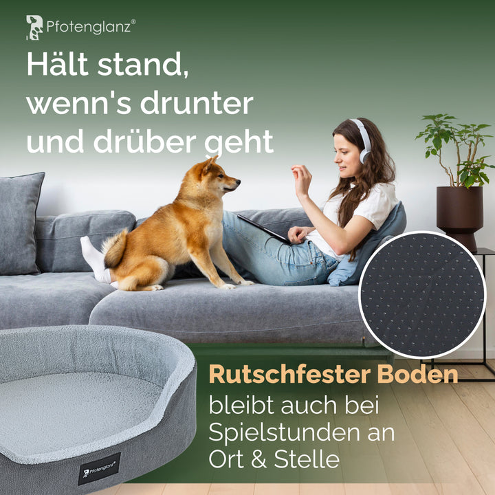 - Geborgenheit Pur: Pfotenglanz Hundebett mit Rand (20 cm) schenkt deinem Hund ein Sicherheitsgefühl - perfekt zum Anlehnen & Einkuscheln. Die Anti-Rutsch-Beschichtung hält das Bett auch bei wilden Sprüngen an Ort und Stelle